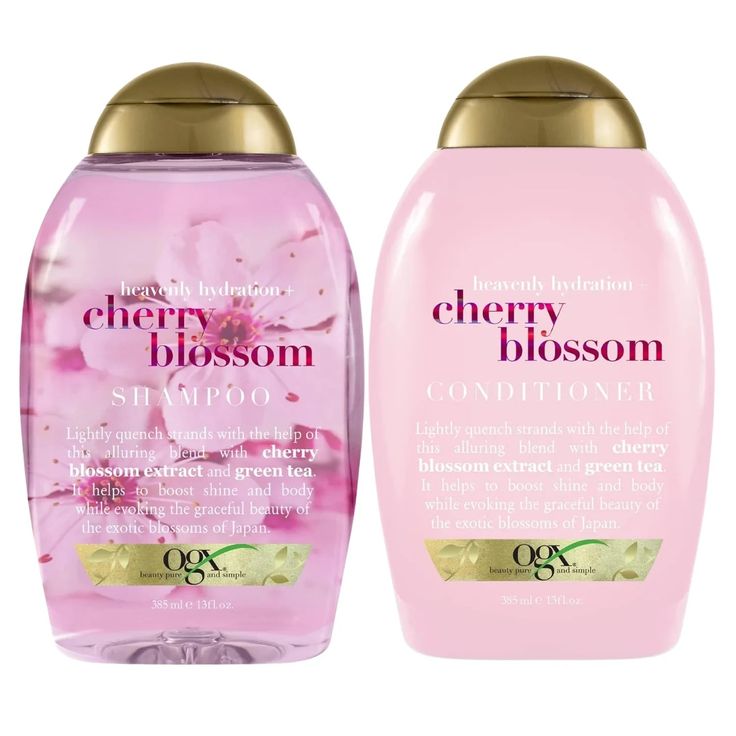 Effortless, undone perfection: OGXCherry Blossom Shampoo and OGXCherry Blossom Conditioner to keep it soft and sweet scented, paired with L’Oréal Elvive Glycolic Gloss Hair Serum for that glossy, almost liquid shine.