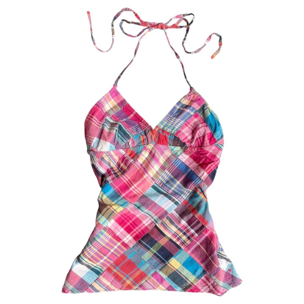 A 2000s style halterneck in bold colours and playful patterns reflects Summer Roberts’ off-duty style in The O.C.. This is a key statement piece. Fitted, eye catching, and perfect for that confident, put together look. Some great brands for these are: Abercrombie & Fitch, Hollister, Brandy Melville, Urban Outfitters, and Princess Polly.